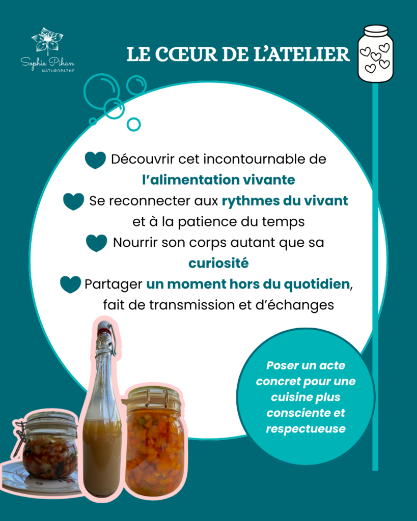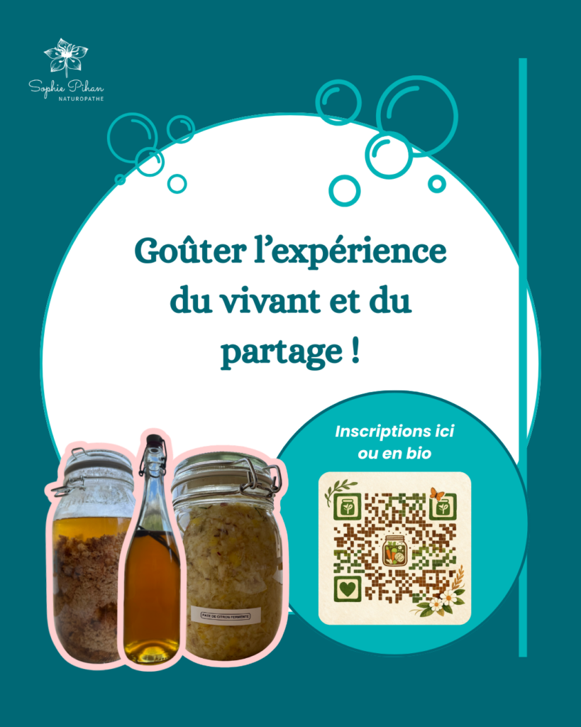Après la sortie de mon livre “Fermentez votre bien-être : guide naturopathique pour une santé optimale grâce à la fermentation” auquel vous avez fait un merveilleux accueil (MERCI !), je compte vous proposer une série d’ateliers de mise en pratique de la fermentation !